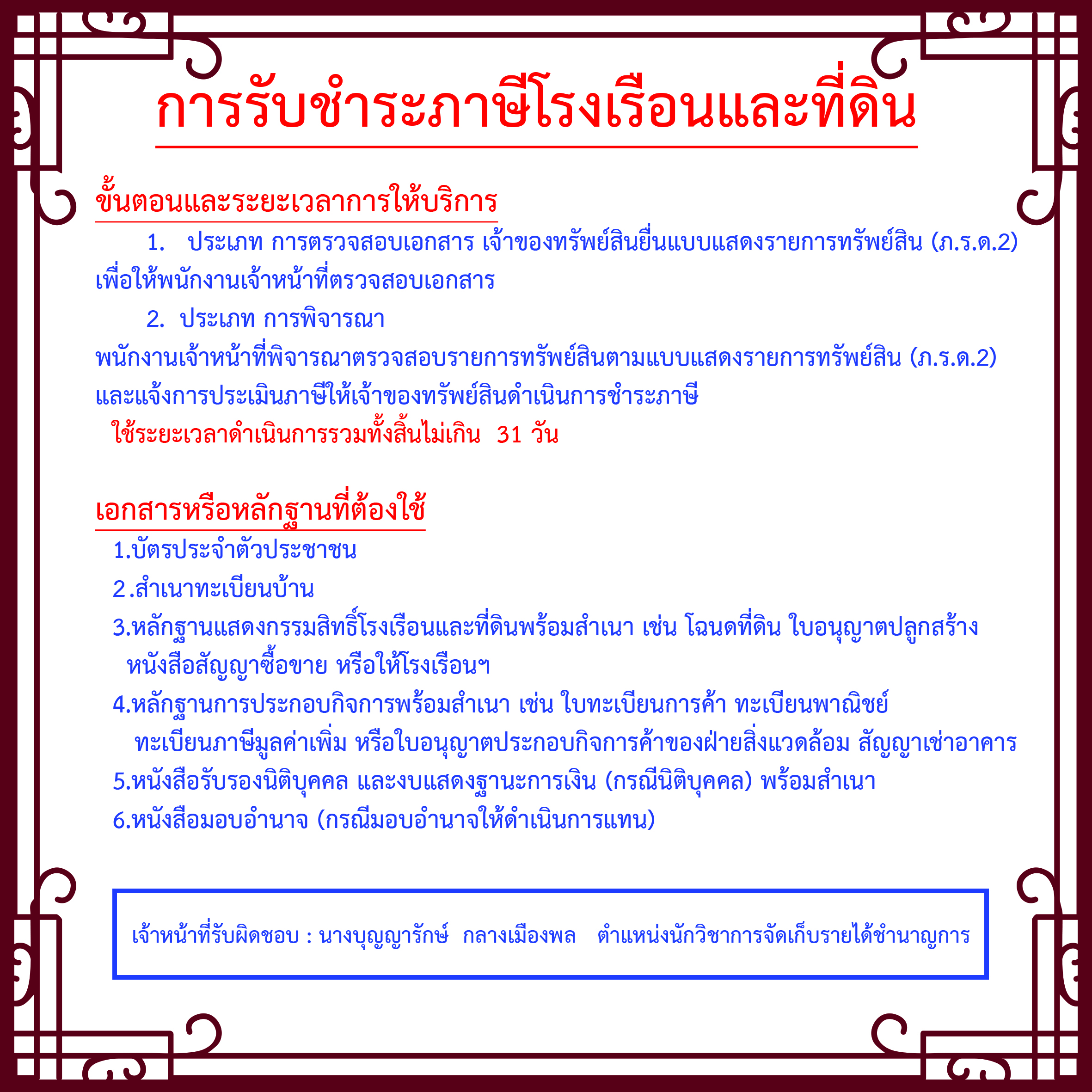 มาตรฐานการให้บริการ การชำระภาษีโรงเรือนและที่ดิน