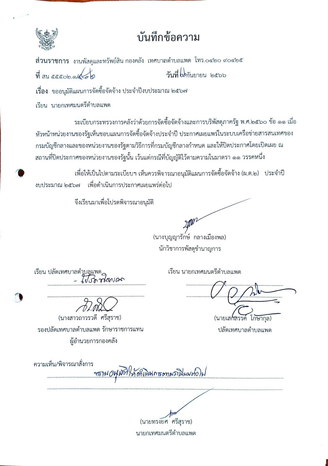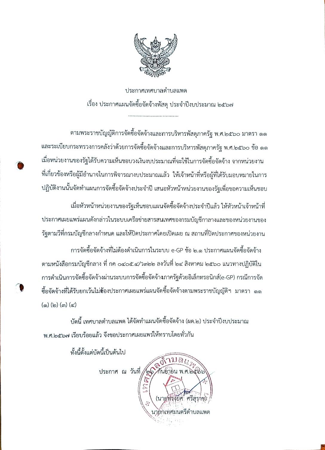 ประกาศแผนการจัดซื้อจัดจ้างพัสดุ ประจำปีงบประมาณ พ.ศ. ๒๕๖๗