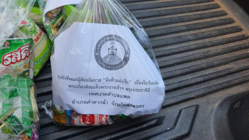 รายละเอียด : เทศบาลตำบลแพดจัดกิจกรรม "จิตอาสา มีแล้วแบ่งปัน" มอบถุงยังชีพ เนื่องในโอกาสวันเฉลิมพระชนมพรรษาสมเด็จพระนางเจ้าฯพระบรมราชินี